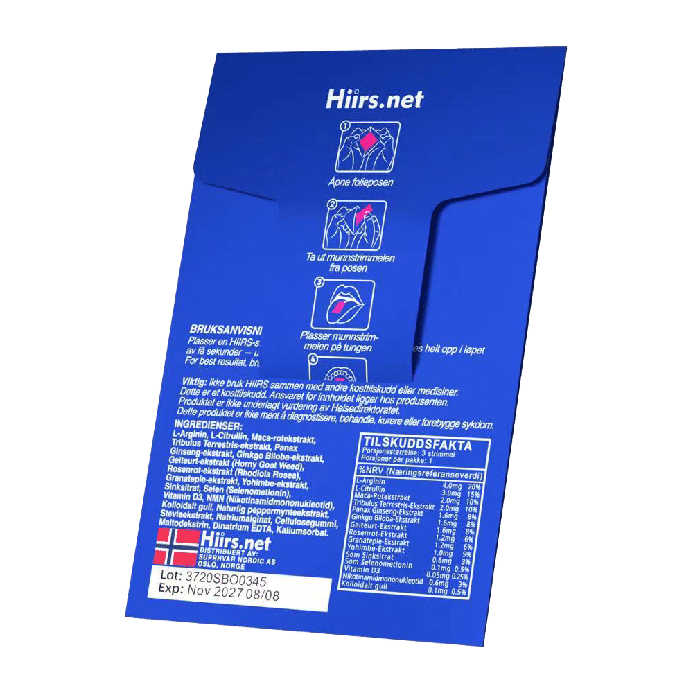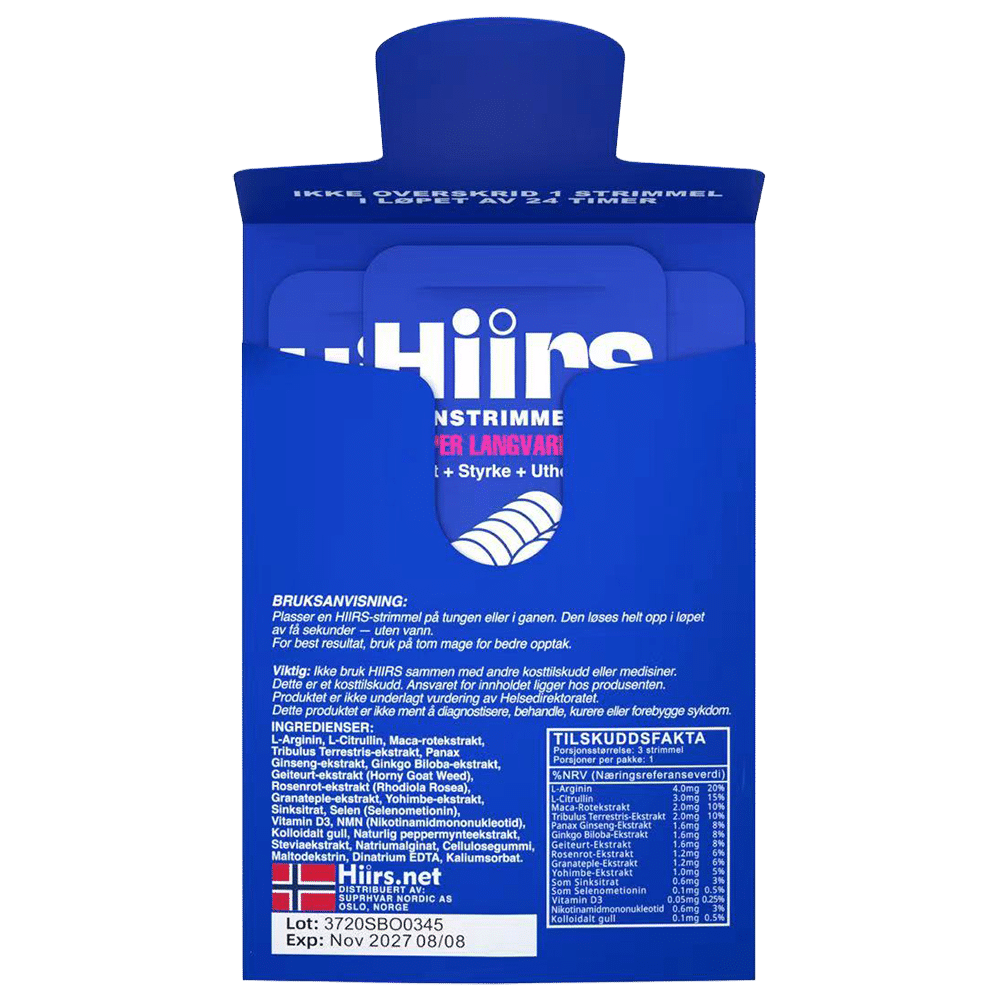 Each serving provides a balanced combination of performance-boosting botanicals and essential micronutrients. The compact format makes HIIRS strips easy to carry and discreet to use anytime, anywhere — an effective solution for daily energy and vitality.